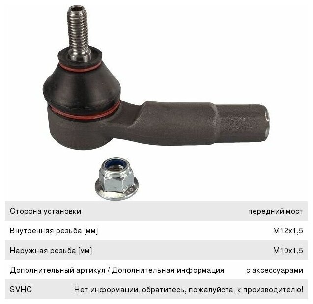Type: tie rod end, car brand: Ford, Mazda, car model: Audi S6, Ford Fiesta V, Ford Fusion, Mazda 2, OE code: Ford 1202548, Ford 2S6J-3289-AC, Mazda DD32-32-280, Mazda DE90-32-280, installation location: front right