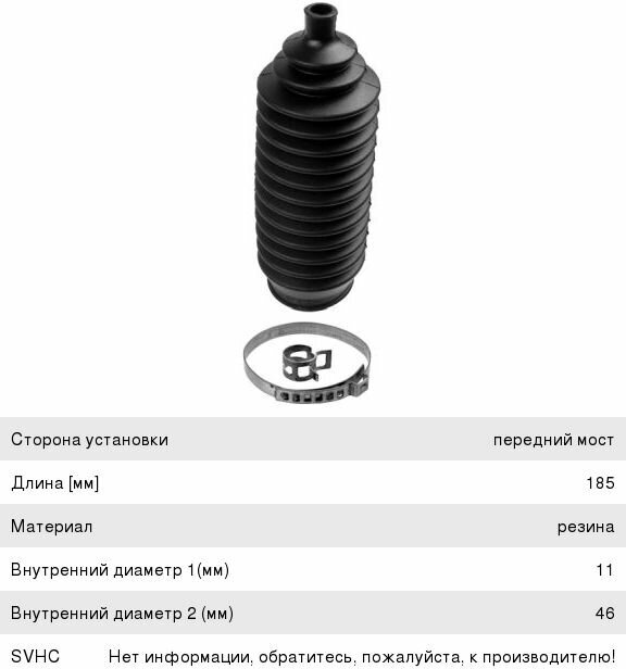 Type: steering rack boot, car brand: Mitsubishi, car model: Audi TT, Chevrolet Aveo, Dodge Charger, Dodge Ram 2500, Ford C-Max, Ford Fiesta, Ford Focus, Ford Transit Connect, Honda Accord, Honda Civic, Infiniti FX , Infiniti JX, Infiniti Q45, Infiniti QX4