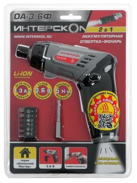 INTERSKOL OA-3.6F, 3.6 V, Li-Ion, 5 Nm, 210 rpm, backlight