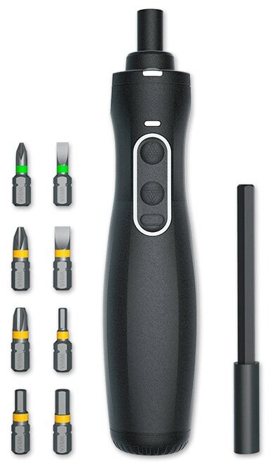 1x Screwdriver, 1x Rod, 8x Bits, 1x Charging cable