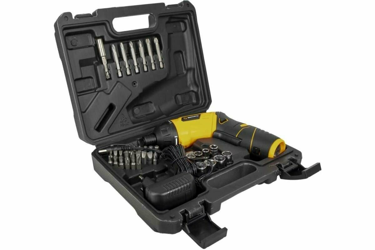Screwdriver, set of bits and sockets, charger, case