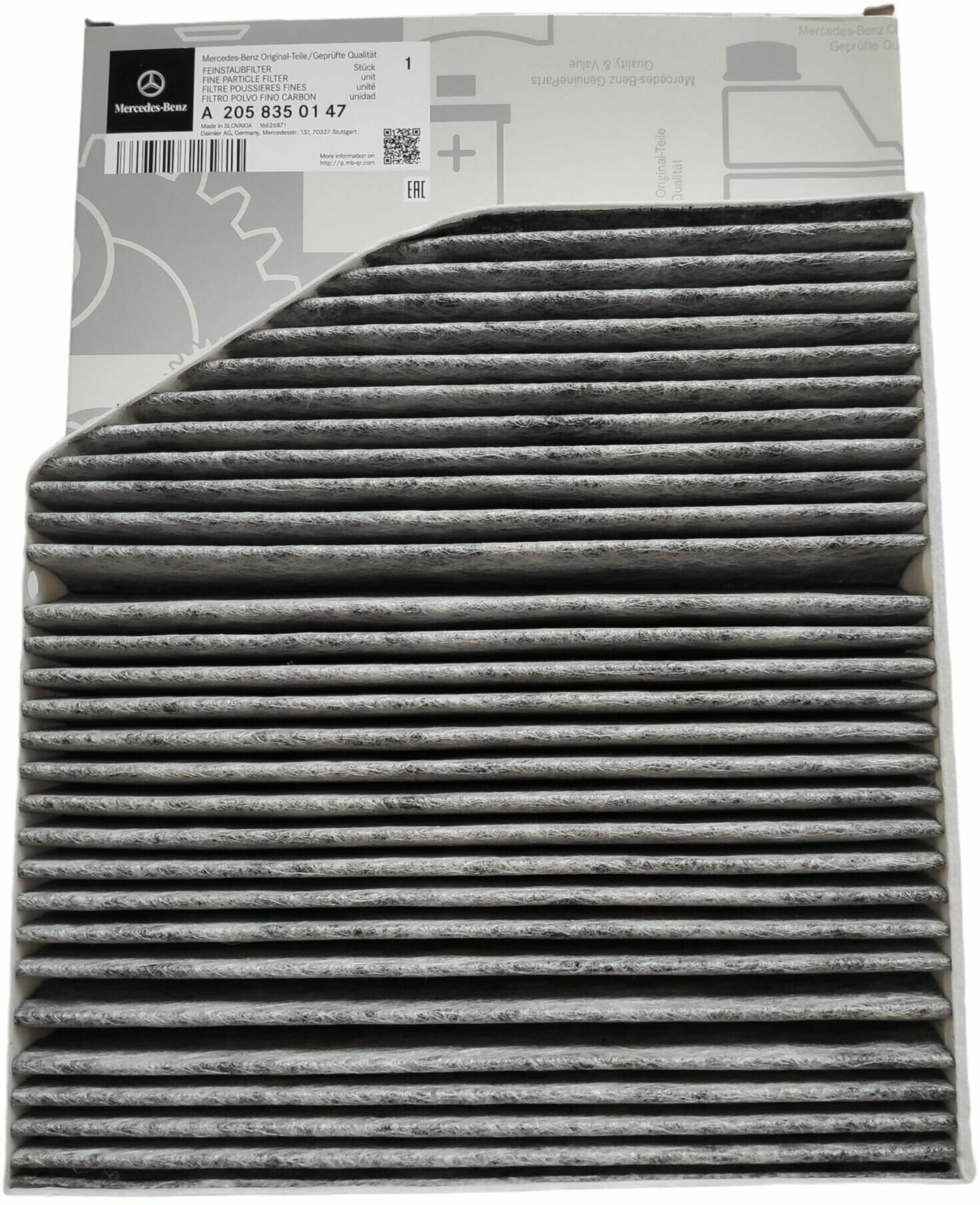 Car brand: Mercedes-Benz, car model: Mercedes-Benz C-class, Mercedes-Benz CLK-class, Mercedes-Benz E-class, Mercedes-Benz GLC-class, analogue: A2058350147, length: 260 mm, width: 250 mm, thickness: 40 mm, filter material: carbon