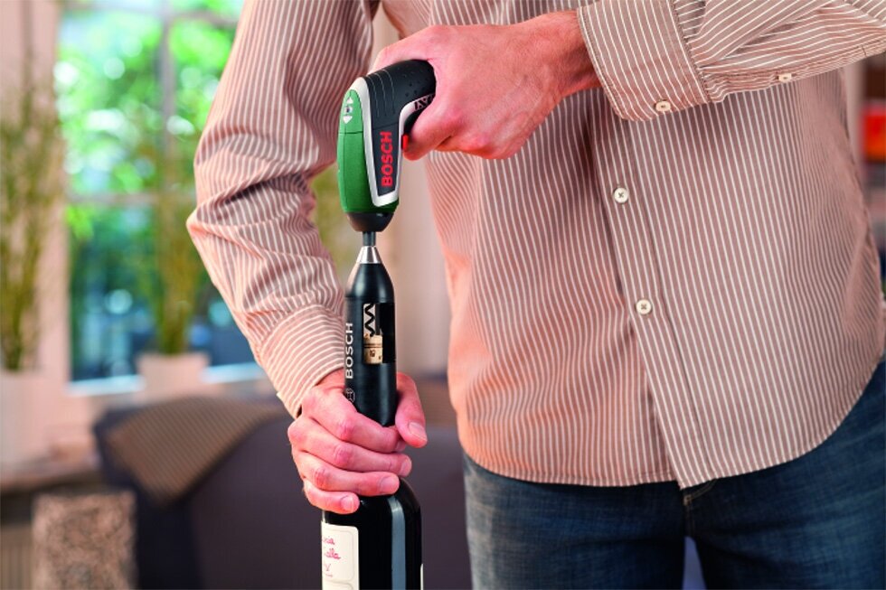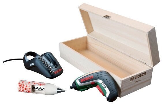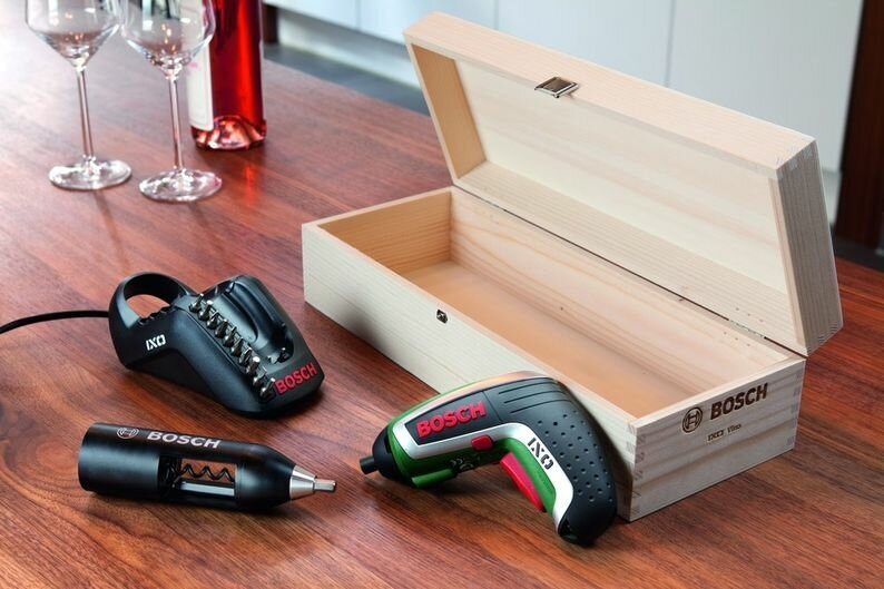 Charger, holder with 10 nozzles, corkscrew, wooden case