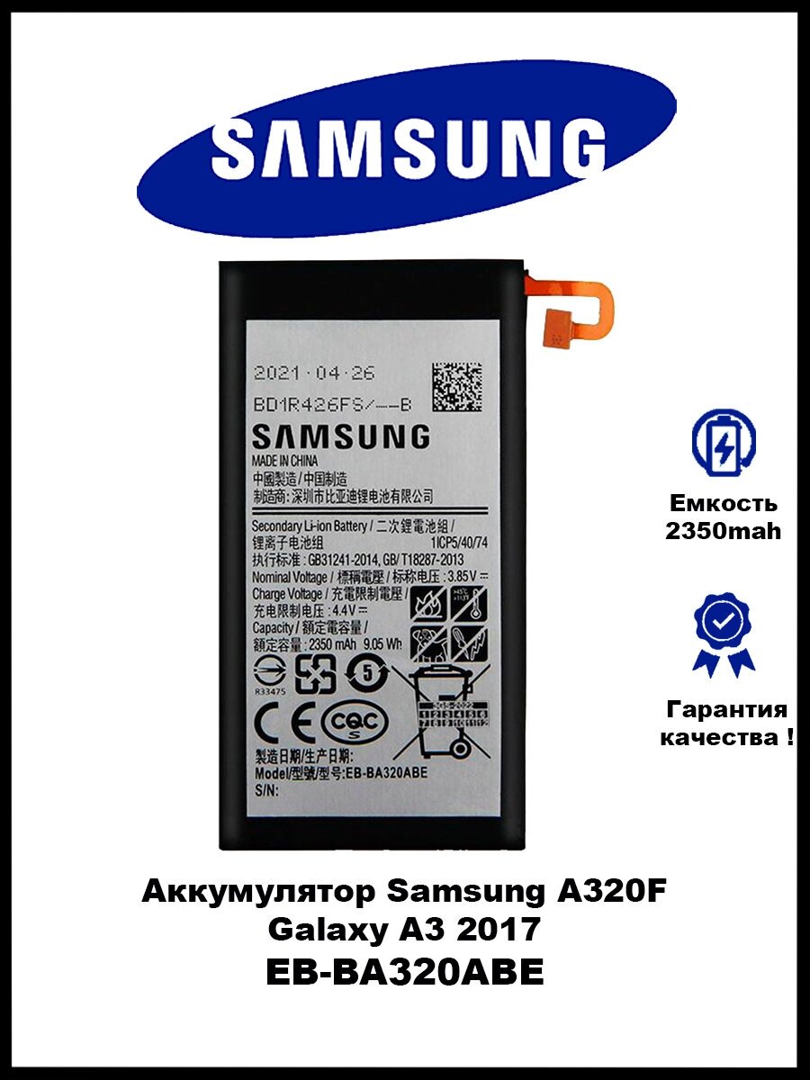 Phone manufacturer: Samsung, compatible models: Samsung Galaxy A3 2017, Samsung Galaxy A3 2017 SM-A320F Single Sim, Samsung Galaxy A3 2017 SM-A320F/DS, capacity: 2350 mAh