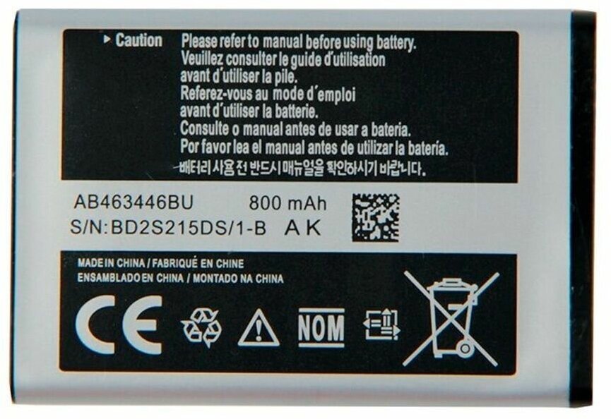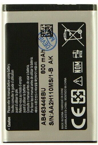 Phone manufacturer: Samsung, capacity: 800 mAh, features: serviceable battery