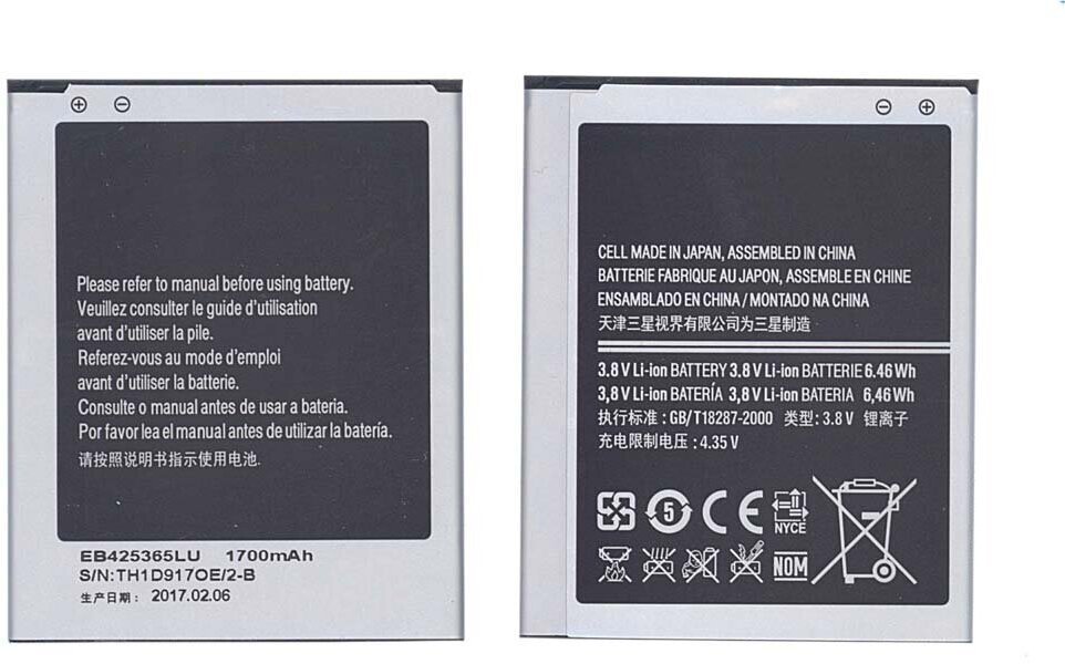 Phone manufacturer: Samsung, capacity: 1700 mAh, features: serviceable battery