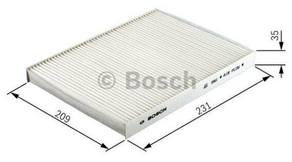 Car brand: Ford, Volvo, car model: Ford Focus, Volvo C30, Volvo C70, Volvo C70 Convertible, Volvo S40, Volvo V50, analogue: BOSCH: 1987432413, length: 235 mm, width: 210 mm, thickness: 35 mm, filter material: combined