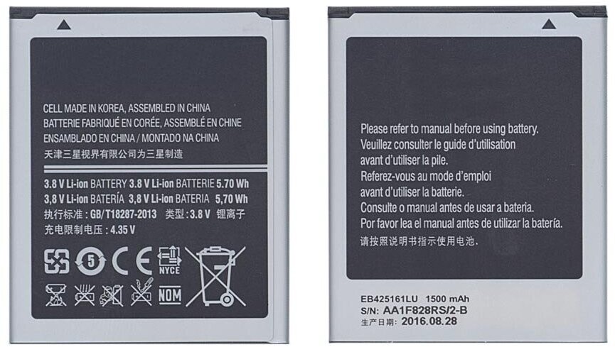Phone manufacturer: Samsung, capacity: 1500 mAh