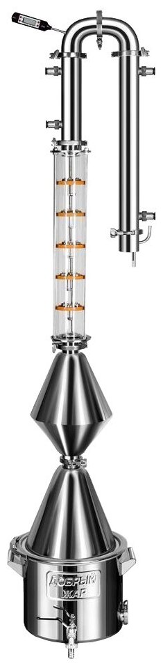 Additional Information: Two thermometers: on the tank and on the top of the column; dephlegmator 200 mm and refrigerator 500 mm with 12 tubes; tsarga with three Panchenkov nozzles; the possibility of completing with a low or high cone assembly height while increasing
