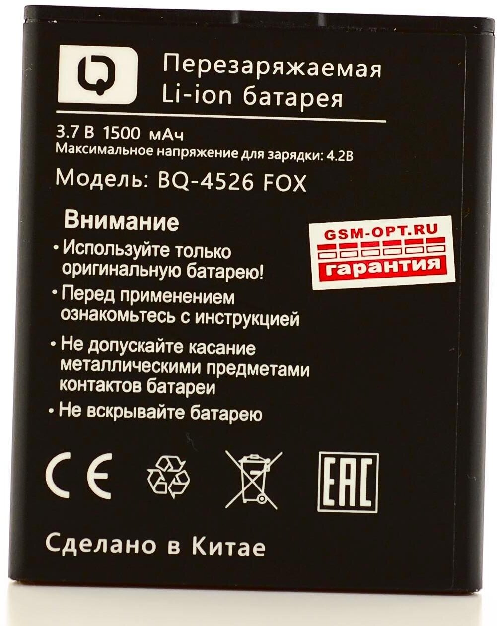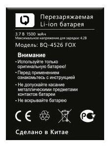 Phone manufacturer: BQ, compatible models: BQ 4526 Fox, capacity: 1500 mAh