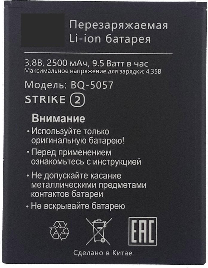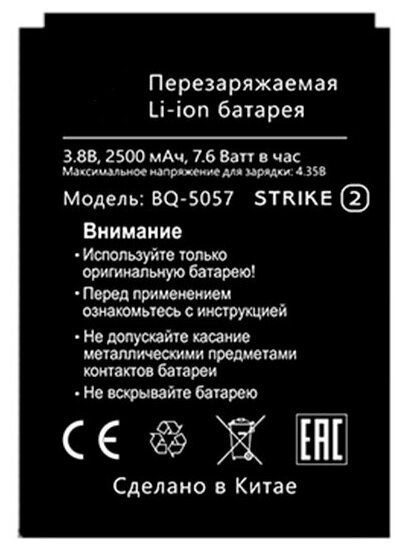 Phone manufacturer: BQ, capacity: 2500 mAh