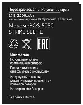 Phone manufacturer: BQ, capacity: 2500 mAh