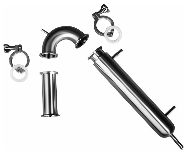 Transparent diopter for visual control; cap plate for strengthening alcohol vapors; clamp connections; Panchenkov nozzle; tubular refrigerator