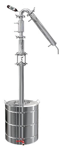 Transparent diopter for visual control; cap plate for strengthening alcohol vapors; clamp connections; Panchenkov nozzle; tubular refrigerator; dephlegmator; column 92 cm high and 51 mm in diameter; arch-pe