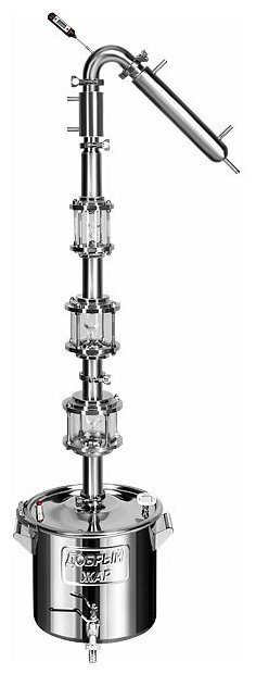 Three transparent diopters for visual control with cap plates for strengthening alcohol vapors; clamp connections; Panchenkov nozzle; tubular refrigerator; dephlegmator; column 92 cm high and 51 m in diameter
