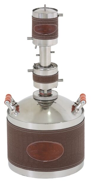 Vertical dephlegmator; leather and fabric options for exterior trim; opening for a thermometer in front of the refrigerator; external connection to the atmosphere 6 mm