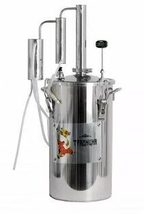 Tank with a volume of 20 l - 1 pc., Removable cover - 1 pc., Superstructure No. 1 - 1 pc., Safety valve - 1 pc., Thermometer - 1 pc., Cold water inlet-outlet pipe 10 m - 1 pc. , a tube for the exit of the finished product and the drain of the steamer