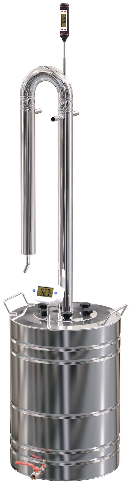 Regular nozzle Panchenkov; at the exit, the distillate has a strength of 80-85⁰; two thermometers: on the top of the column and on the tank