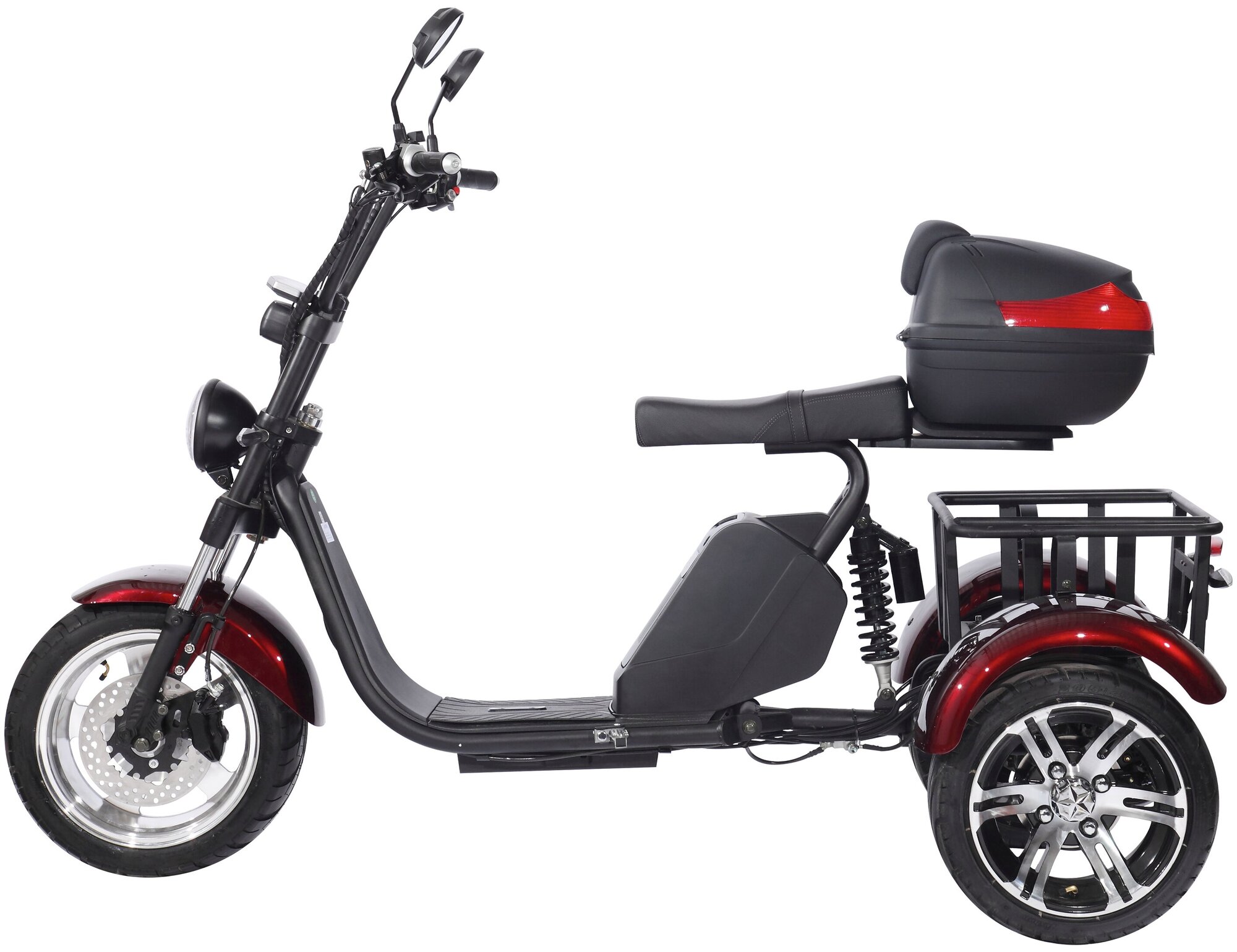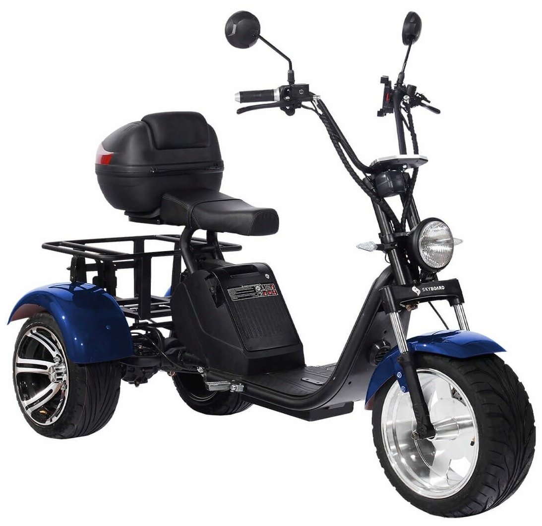 Powerful wheel motor 2000W; controller 60V 2000W; three-speed switching mode; travel distance on a single charge from 45 km; independent bridge; removable battery 20A 60V; charger 5A; steering lock anti-theft system