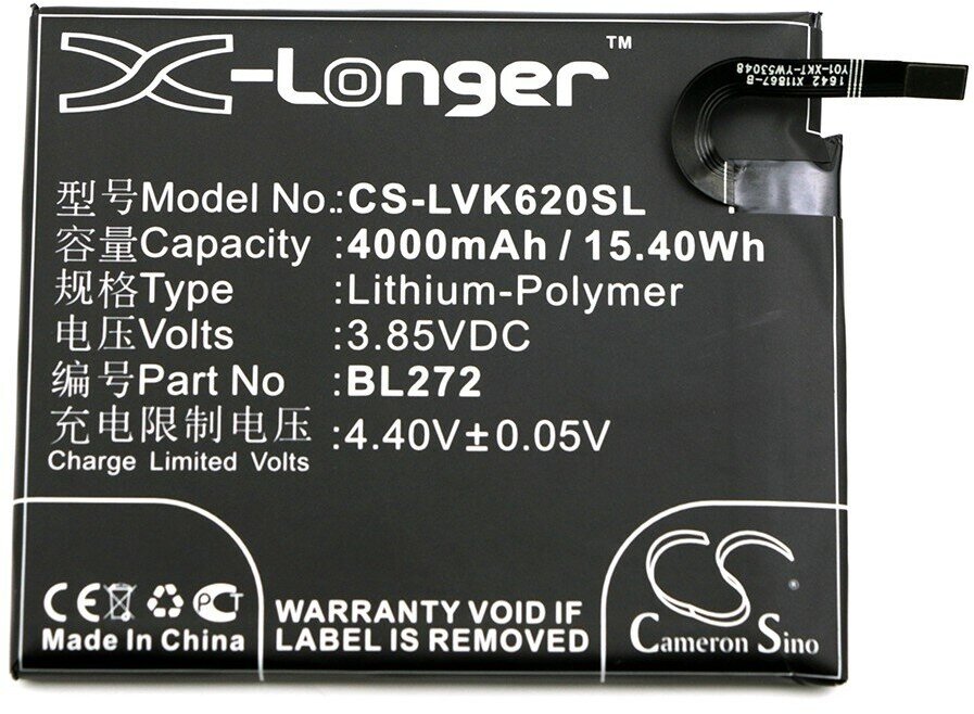 Phone manufacturer: Lenovo, capacity: 4000 mAh