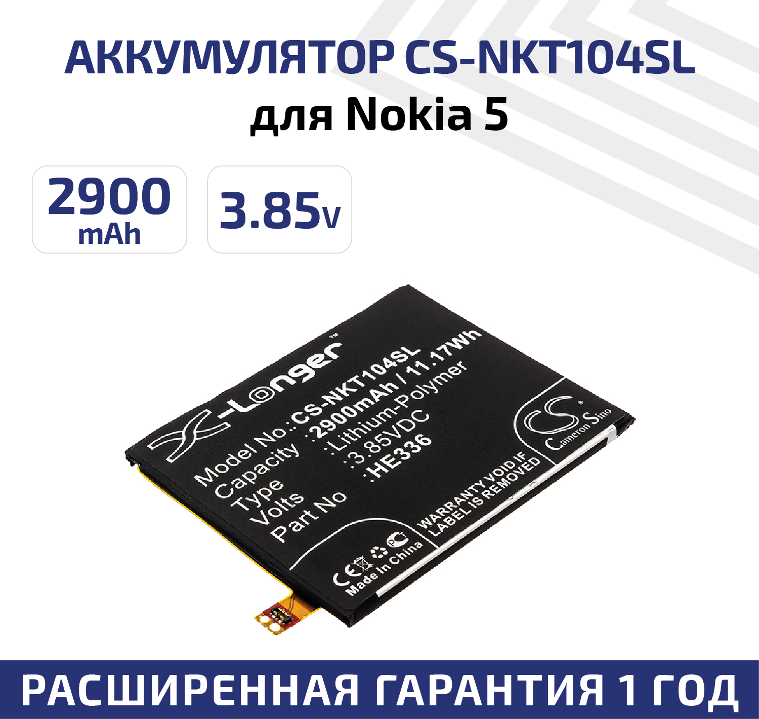 Phone manufacturer: Nokia, compatible models: Nokia 5, Nokia 5 Dual SIM, capacity: 2900 mAh