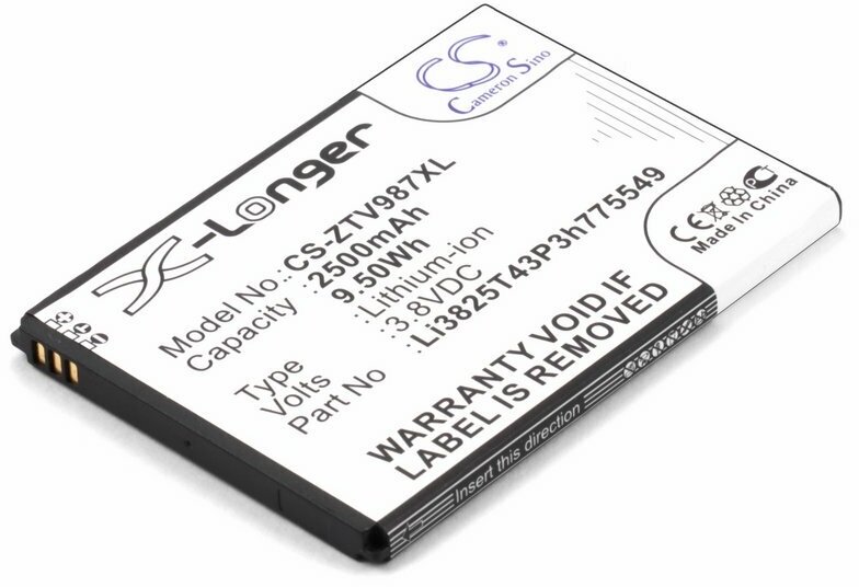 Phone manufacturer: ZTE, compatible models: ZTE Skate 2 V967S, capacity: 2500 mAh