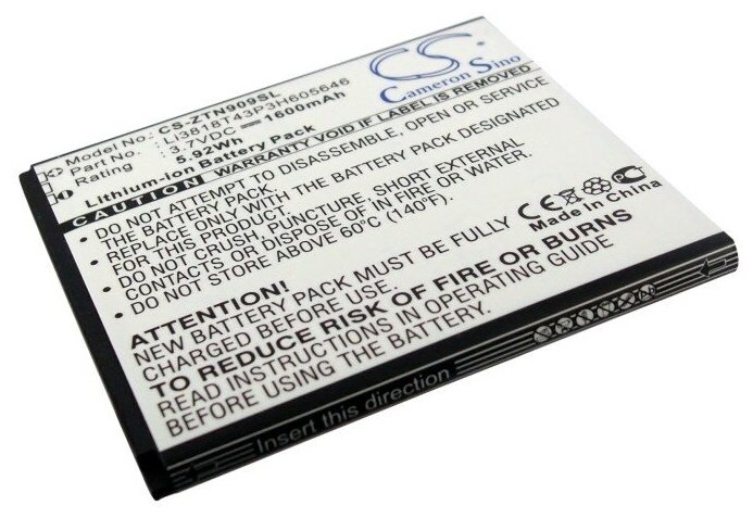 Phone manufacturer: ZTE, capacity: 1600 mAh