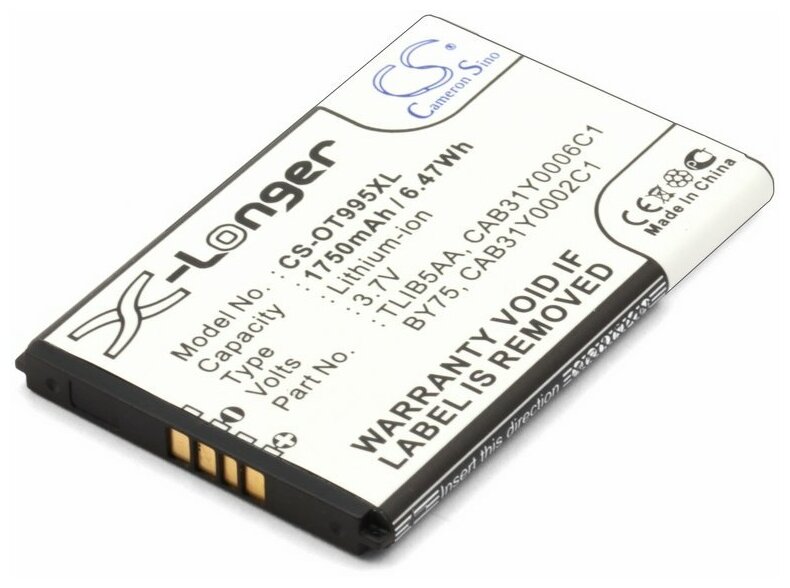 Phone manufacturer: Alcatel, capacity: 1750 mAh