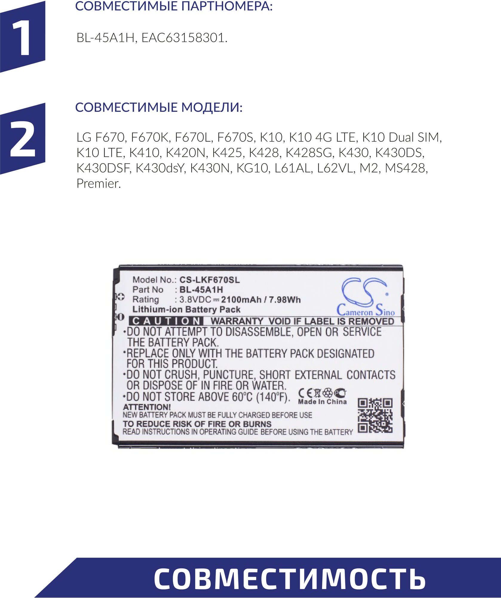 Phone manufacturer: LG, compatible models: LG K10 LTE K430DS, capacity: 2100 mAh