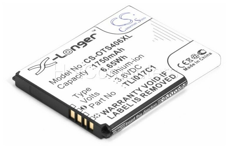 Phone manufacturer: Alcatel, compatible models: Alcatel One Touch Pixi 3 5017D, capacity: 1750 mAh