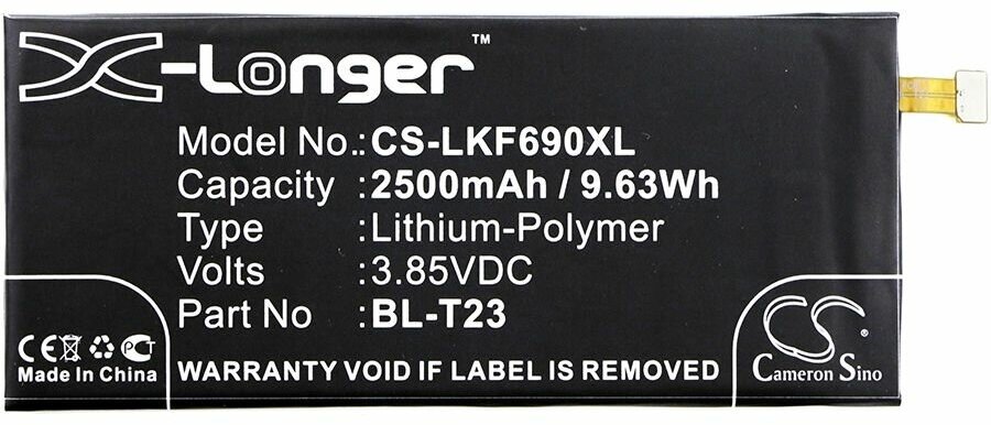 Phone manufacturer: LG, compatible models: LG X cam K580DS, capacity: 2500 mAh
