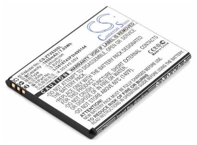 Phone manufacturer: ZTE, capacity: 1850 mAh