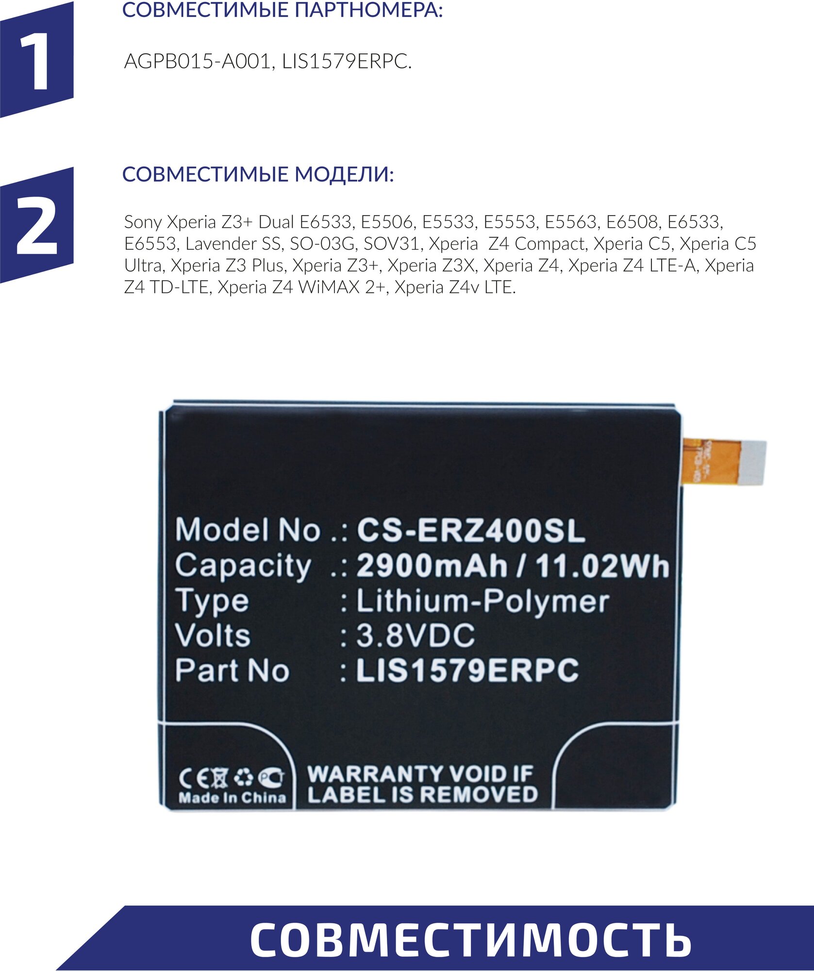 Phone manufacturer: Sony, capacity: 2900 mAh