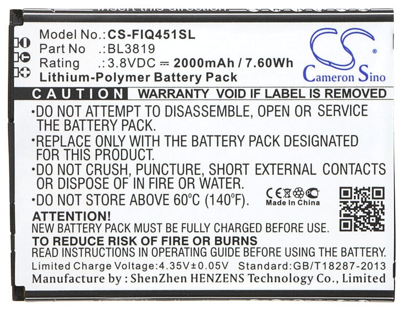 Phone manufacturer: Fly, capacity: 2000 mAh