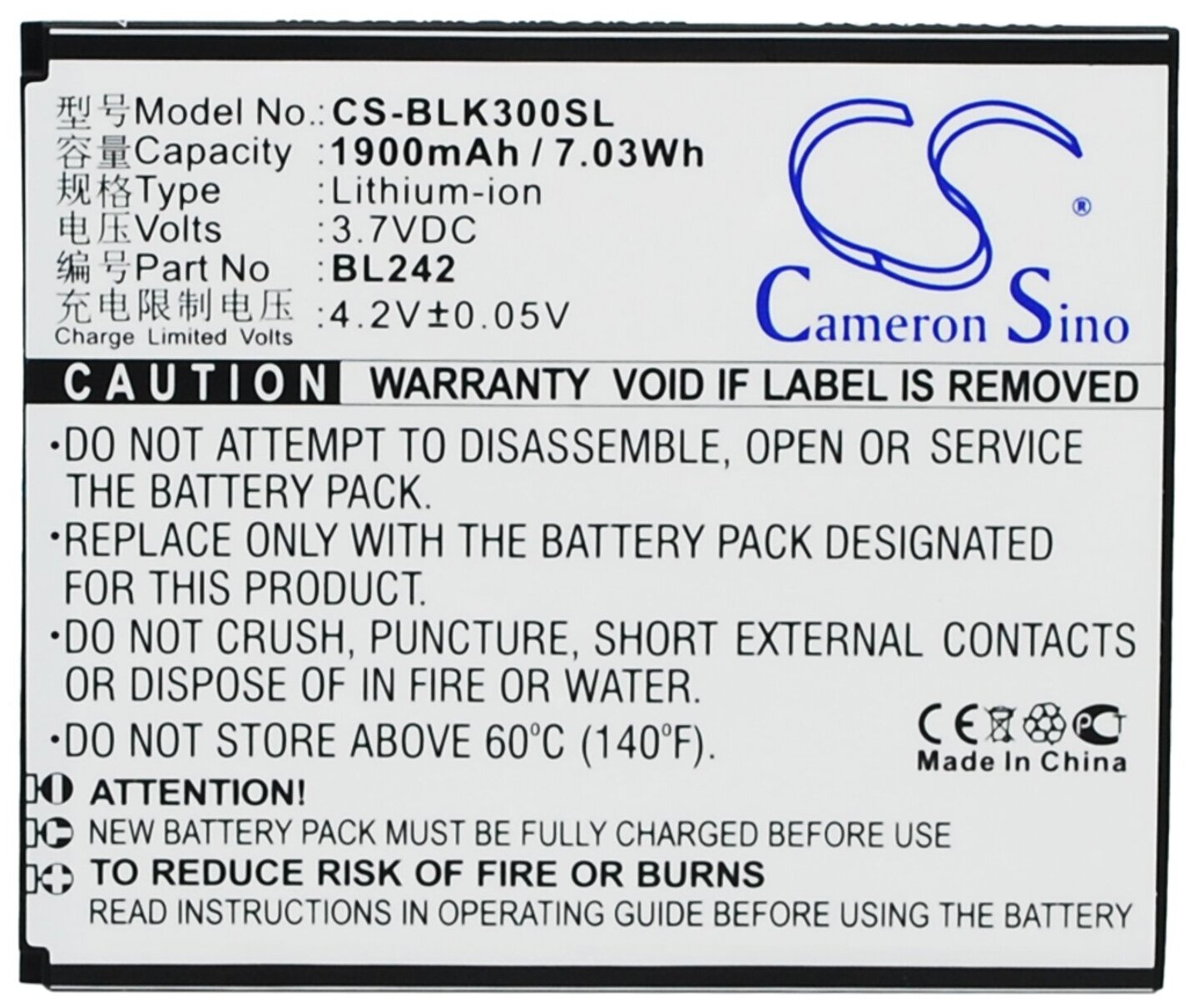 Phone manufacturer: Lenovo, capacity: 1900 mAh