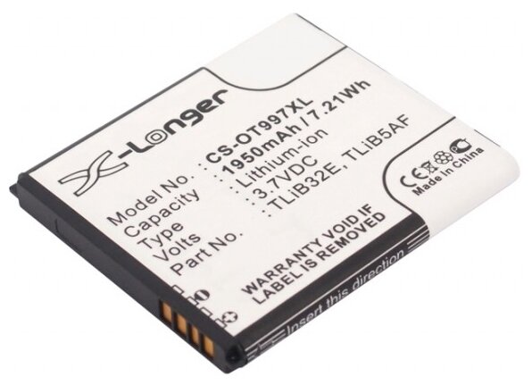 Phone manufacturer: Alcatel, capacity: 1950 mAh