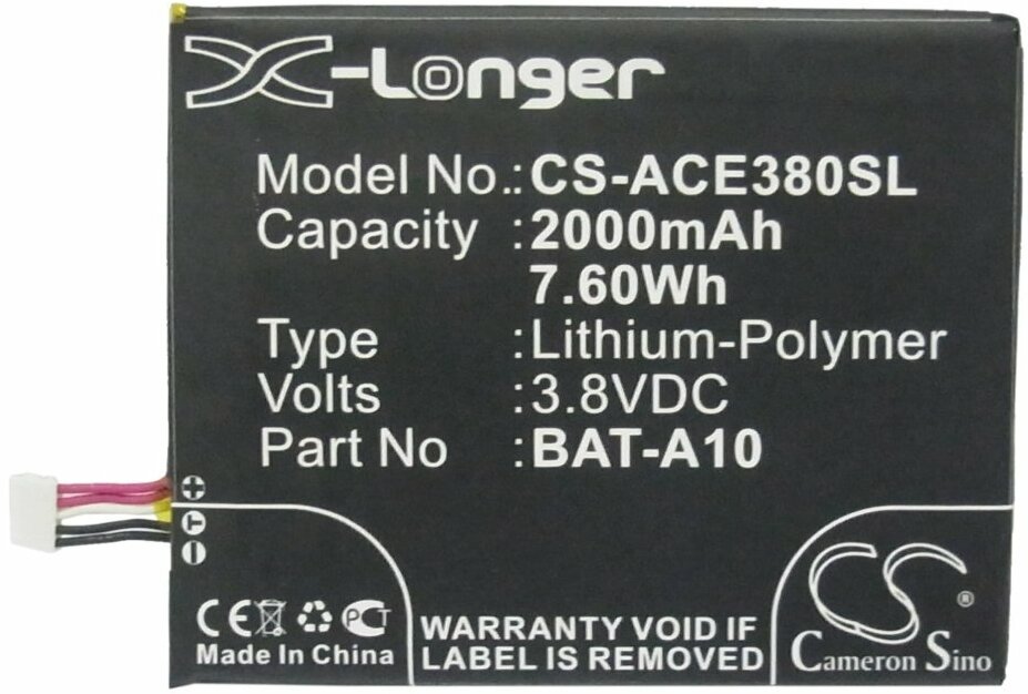 Phone manufacturer: Acer, capacity: 2000 mAh