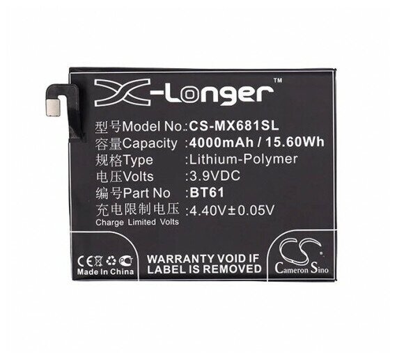 Phone manufacturer: Meizu, compatible models: Meizu M3 Note, capacity: 4000 mAh