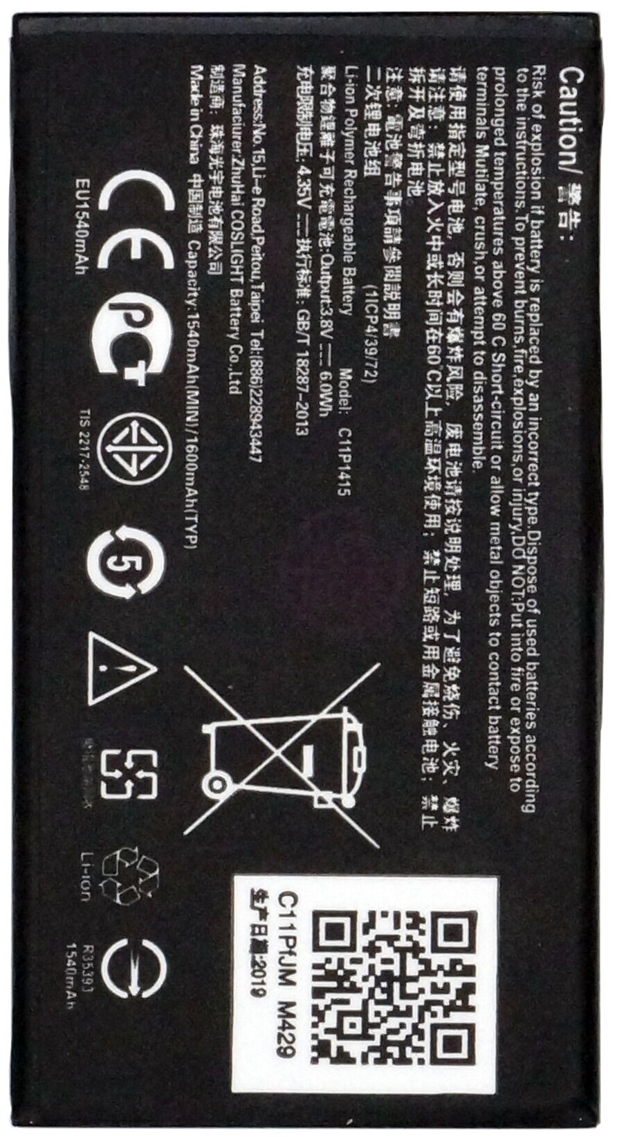 Phone manufacturer: Asus, capacity: 1540 mAh