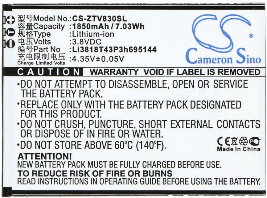 Phone manufacturer: ZTE, compatible models: ZTE Blade G Lux, capacity: 1850 mAh