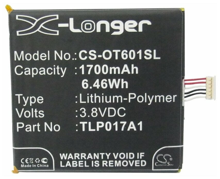 Phone manufacturer: Alcatel, capacity: 1700 mAh