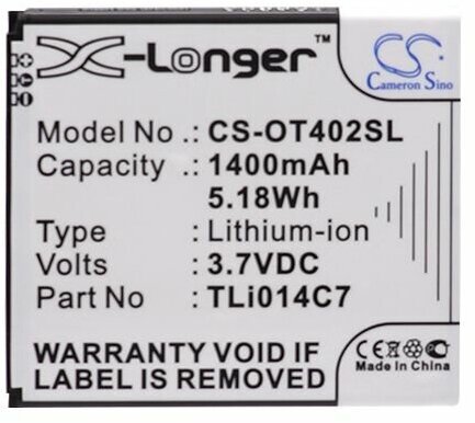 Phone manufacturer: Alcatel, compatible models: Alcatel One Touch Pixi First 4024D, capacity: 1400 mAh
