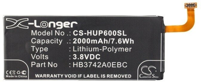 Phone manufacturer: Huawei, compatible models: Huawei Ascend P6, capacity: 2000 mAh