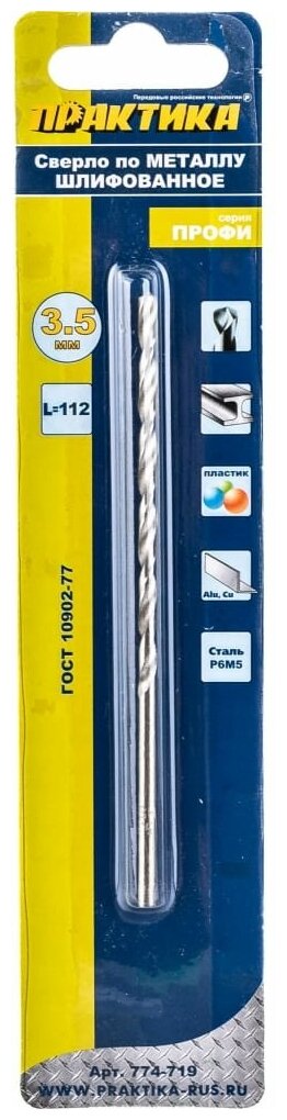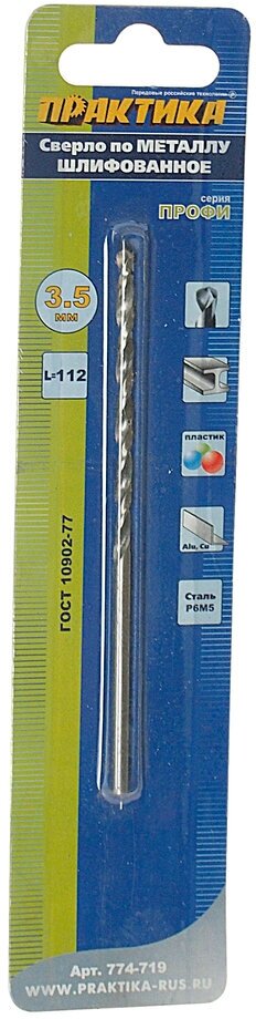 Equipment: piece, dimensions: 3.5x75x112 mm, shank type: cylindrical, quantity in the set package: 1 pc., drill material: HSS, sharpening angle: 118 degrees, for metal