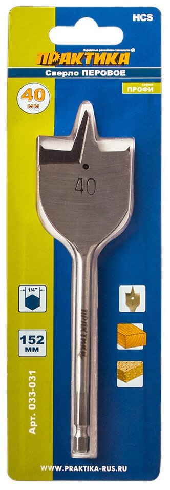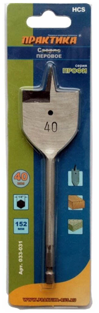 Equipment: piece, dimensions: 40x152 mm, shank type: hexagonal, quantity in a set package: 1 pc., drill material: HSS, for wood
