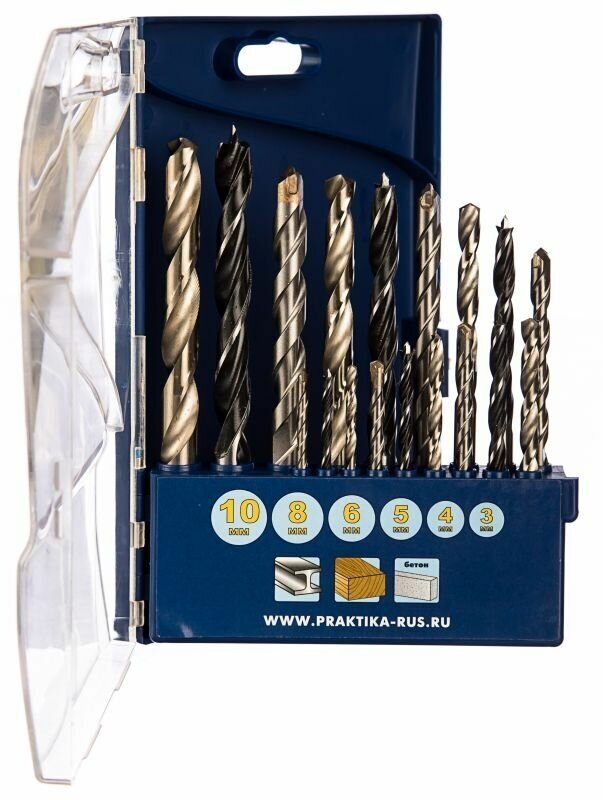 Drill material - high-quality tool steel; drill material for metal - high-speed steel; wood drill material - carbon steel; drill material for concrete - carbide steel