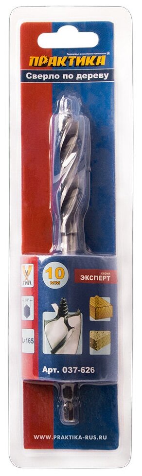 Equipment: piece, dimensions: 10x165 mm, shank type: hexagonal, quantity in a set package: 1 pc., for wood