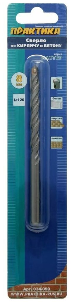 Equipment: piece, dimensions: 8x120 mm, shank type: cylindrical, quantity in a set package: 1 pc., for stone and porcelain stoneware, for brick, for concrete