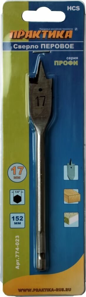 Equipment: piece, dimensions: 17x152 mm, shank type: hexagonal, quantity in a set package: 1 pc., drill material: HSS, for wood