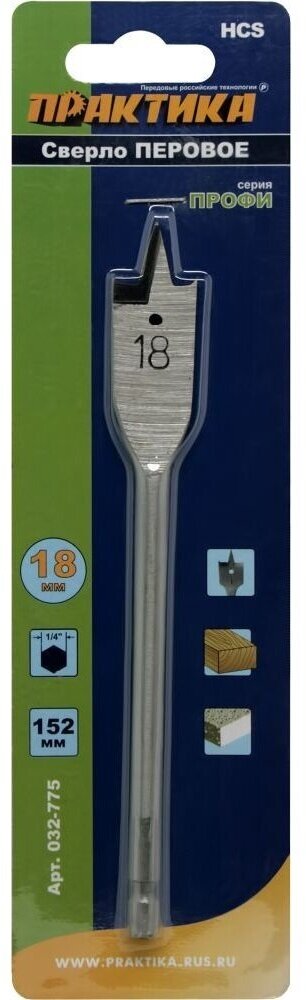 Equipment: piece, dimensions: 18x152 mm, shank type: hexagonal, quantity in the set package: 1 pc., drill material: HSS, for wood